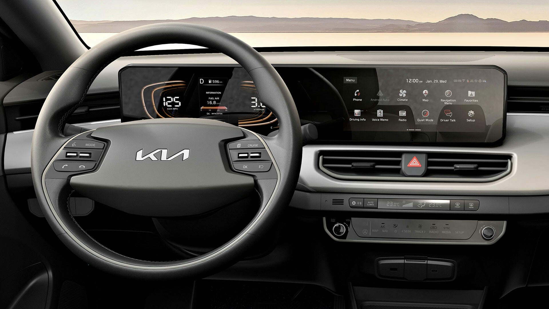 Kia K3 Hatchback estará disponible en enero 2024 , At the heart of the dashboard lies an integrated instrument cluster and panoramic.